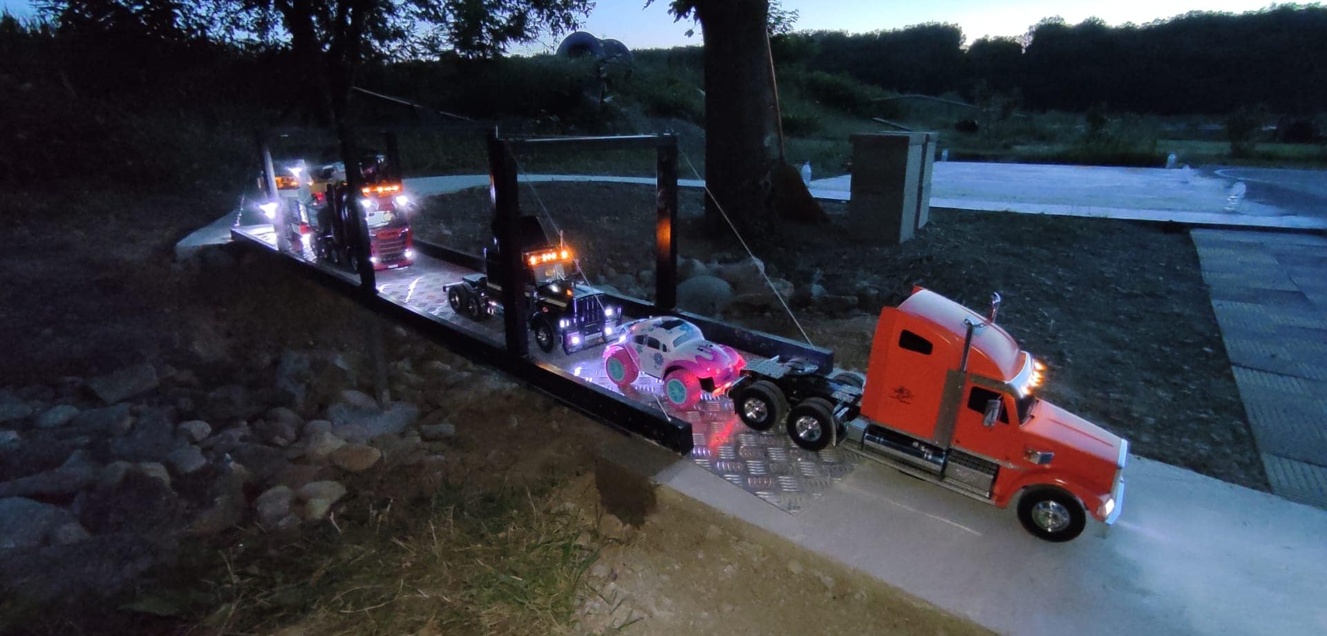 Avec une équipe de passionnés, Gillou contribue activement à la conception, à l’aménagement et à l’évolution de cet espace hors norme. Routes, zones de manœuvre, chantiers, décors techniques : chaque détail est pensé pour reproduire au plus près les conditions réelles et offrir une immersion totale aux passionnés de modélisme camion et TP. Rien n’est figé, tout évolue, se transforme et s’améliore au fil du temps.