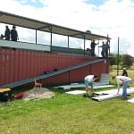 Un grand chantier nous attend ! Nous refaisons actuellement notre piste voiture tout terrain… Avec un tout nouveau podium posé sur container.