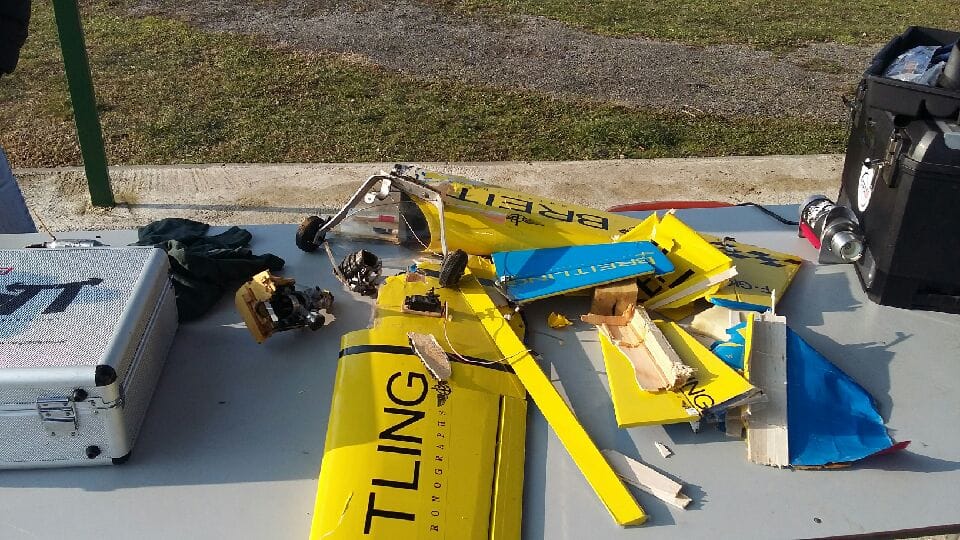 Impact très violent après panne d’accu de réception, le moteur est coupé en 2 !