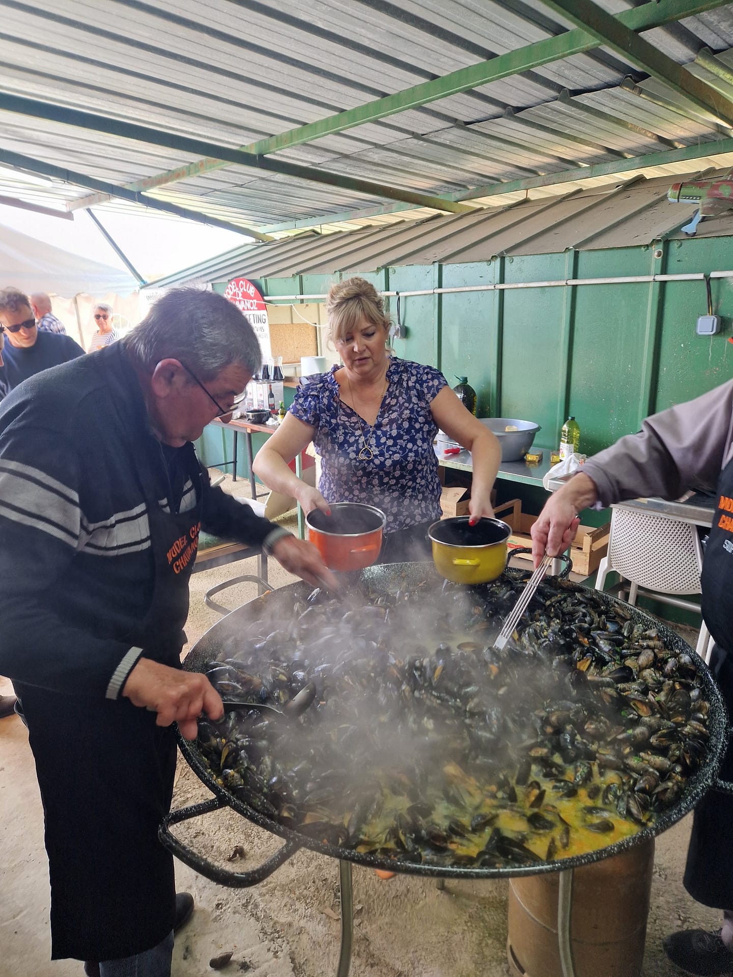 Le samedi 6 avril a eu lieu le repas annuel Moules Frites du MCC avec ses adhérents. De bonnes moules marinières ont été préparées par notre équipe de choc en cuisine.
