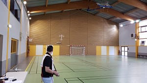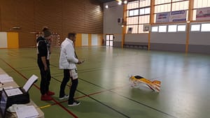 Ce championnat de qualification réunissait une dizaine de pilotes, tous venus en découdre (dans la bonne humeur 🙂 ) pour se qualifier aux championnats nationaux et internationaux de voltige en salle F3P.