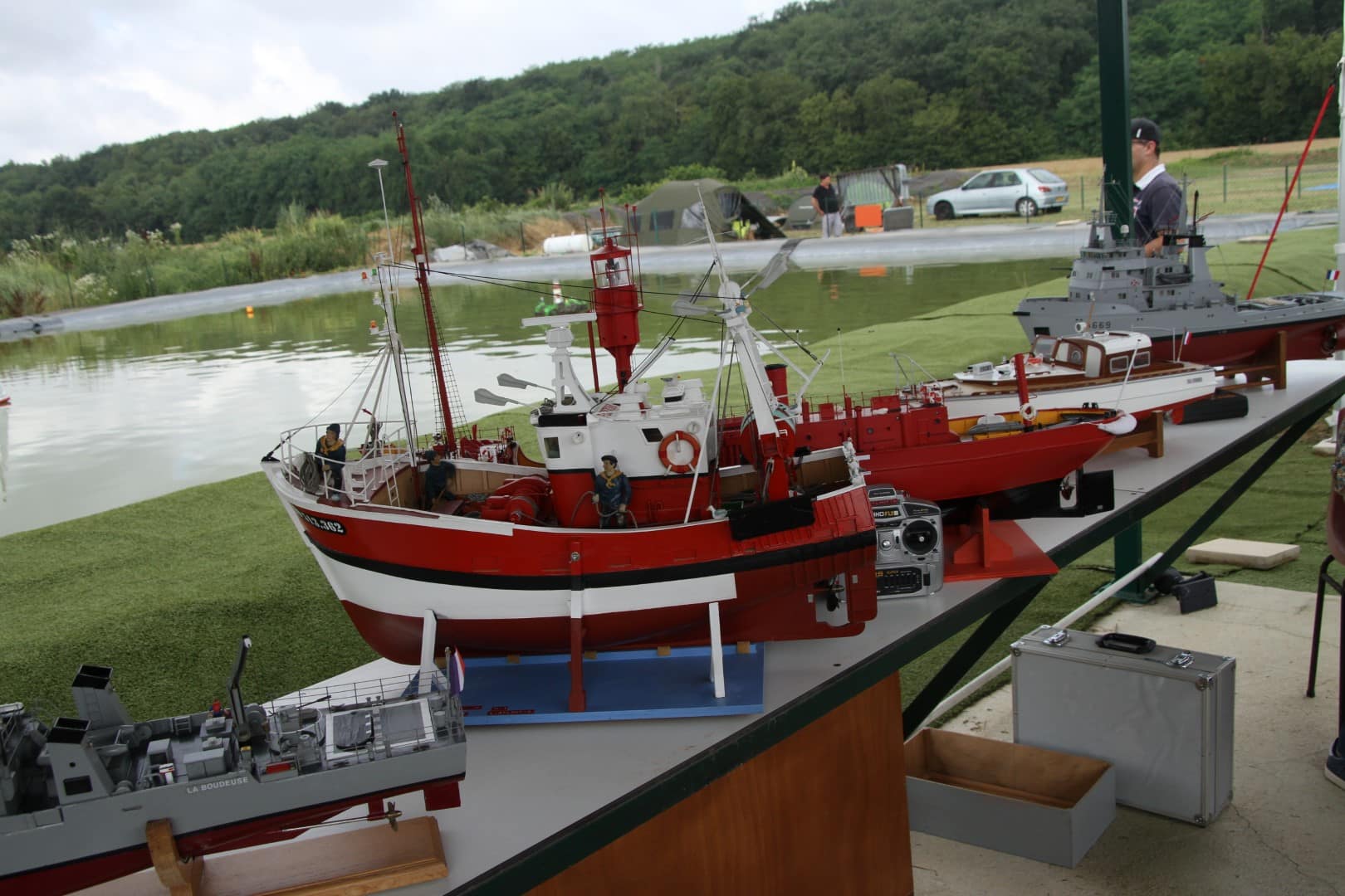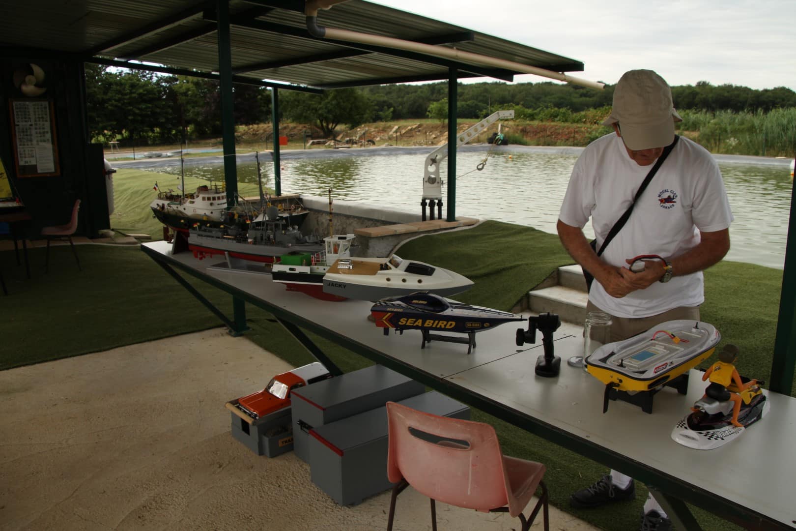 Après avoir bu le café pour celles et ceux déjà présents tôt le matin, les activités modélistes et les démonstrations de chacun commencent, et pour d’autres c’est l’occasion d’échanger entre pilotes sur les machines présentes, aussi bien aux voitures, qu’aux bateaux ou aux avions. Certain sont arrivés la veille pour dormir en camping car ou en toile de tente.